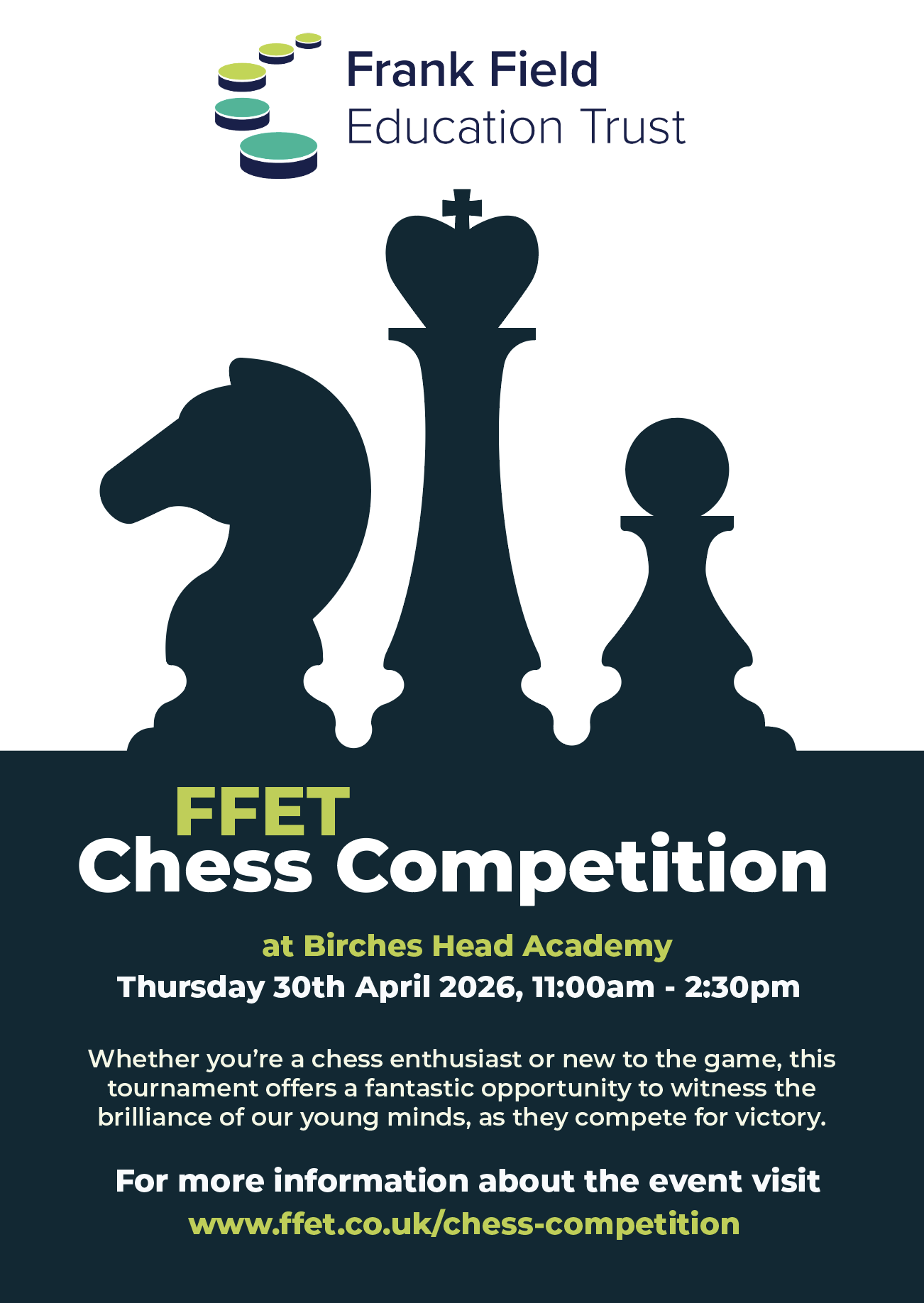 If you would like to enter a team for the FFET Chess competition on 30th April 2026 at Birches Head Academy (11am-2.30pm) please complete the following form. There are four pupils per team and a maximum of two teams per school.